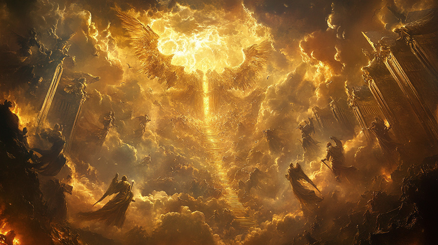 Chapter 39 describes Enoch’s awe before the “Head of Days” (God), surrounded by angels and the righteous dwelling in celestial homes.